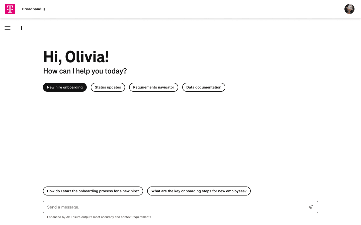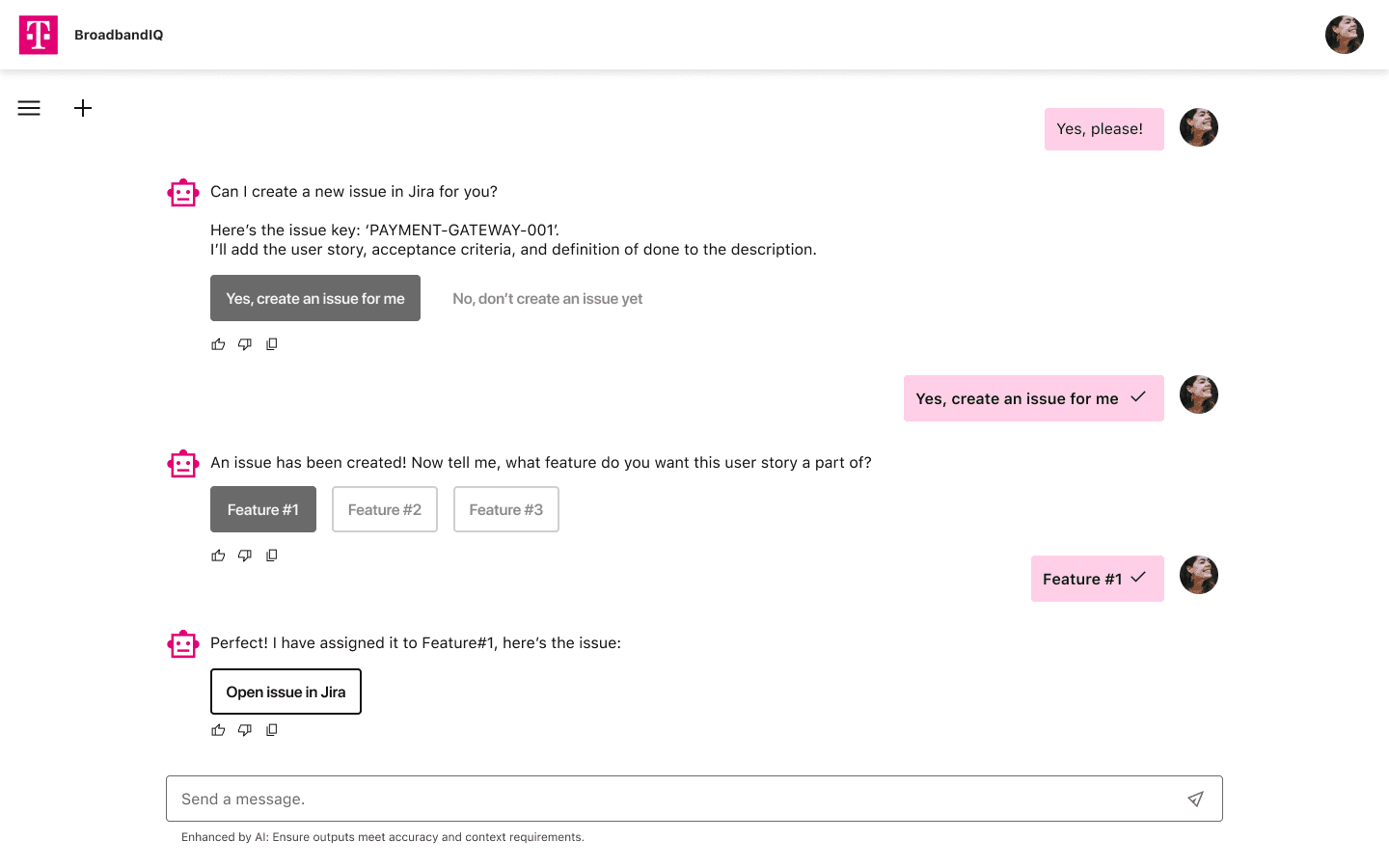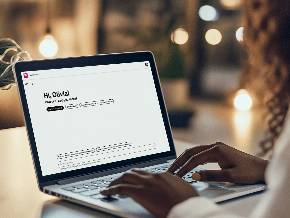 Requesting a new IT project at a large corporation can feel like navigating a maze. Project managers and product owners at T-Mobile struggled to find the right forms, documentation, or next steps to move their ideas forward. Support was overloaded. Processes were fragmented. And the solution on the table (an AI chat assistant) risked becoming just another generic, underused tool if the design didn't earn people's trust from the first interaction. The real challenge wasn't building a chatbot. It was designing a smarter way to access institutional knowledge, cut through bureaucracy, and scale support without losing the human quality that actually makes people come back. Working directly alongside T-Mobile's Service Design research team, I immersed myself in how users actually moved through internal processes: what they searched for, where they got stuck, and what made them abandon the system and ask a colleague instead. That research shaped everything from the conversation flows to the tone of the assistant's responses. We delivered an AI-powered chat interface that guided users through project requests through natural conversation, integrated with existing IT tools to surface real-time updates, and reduced dependency on manual support through self-service flows that felt intuitive rather than clinical. The entire experience was built on T-Mobile's design system, ensuring it felt native to their environment rather than bolted on.