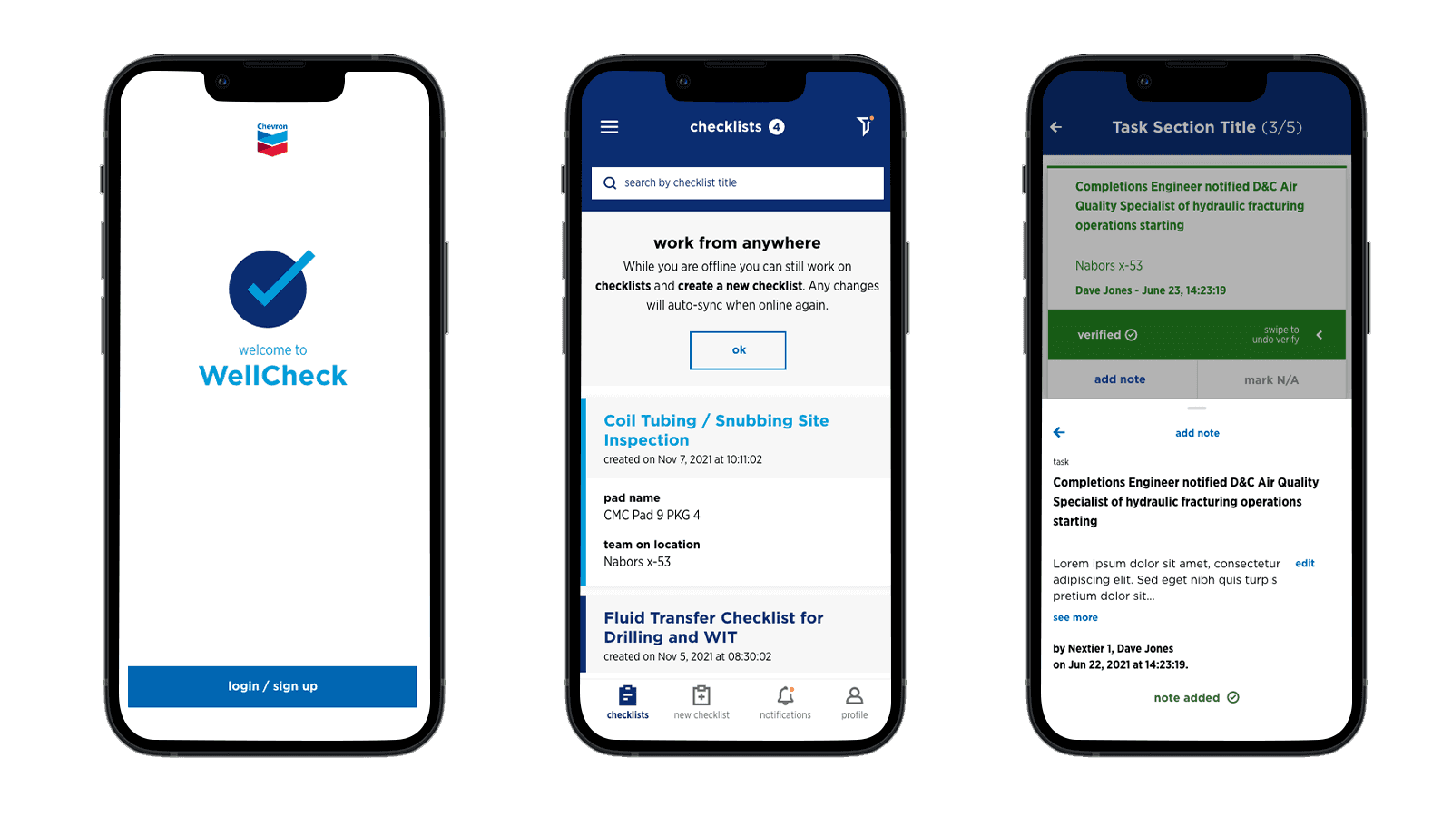 The results came directly from field workers in the Wells department, interviewed after the first version launched. Before the app, completing each task set took around 3 hours manually. After launch, that dropped to between 30 minutes and 1 hour depending on complexity, saving hours per person, per shift, in some of the most demanding conditions imaginable. Safety improved too. Before WellCheck, protocols were spread across paper forms or informal communication, which increased the risk of missed steps. The app provided clear, step-by-step guidance for each activity including required equipment and safety procedures. As the solution expanded to include safety audits and compliance checks, it enabled safety supervisors to monitor execution at scale. Based on the company's internal safety data, this shift was projected to reduce the risk of field incidents by over 50%. No training required for new employees. Duplicate work eliminated. A projected 50%+ reduction in field incidents based on internal safety reports.
